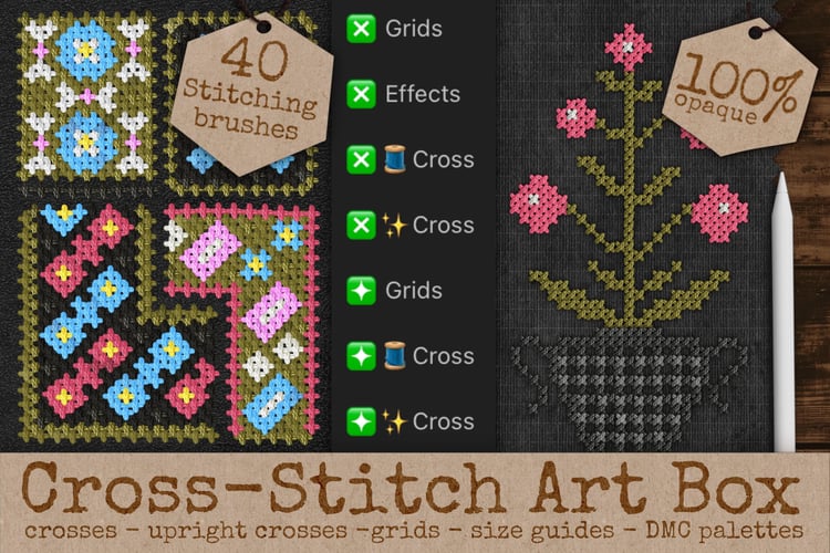 10x10 Grids for Procreate (Cross Stitch Grid)