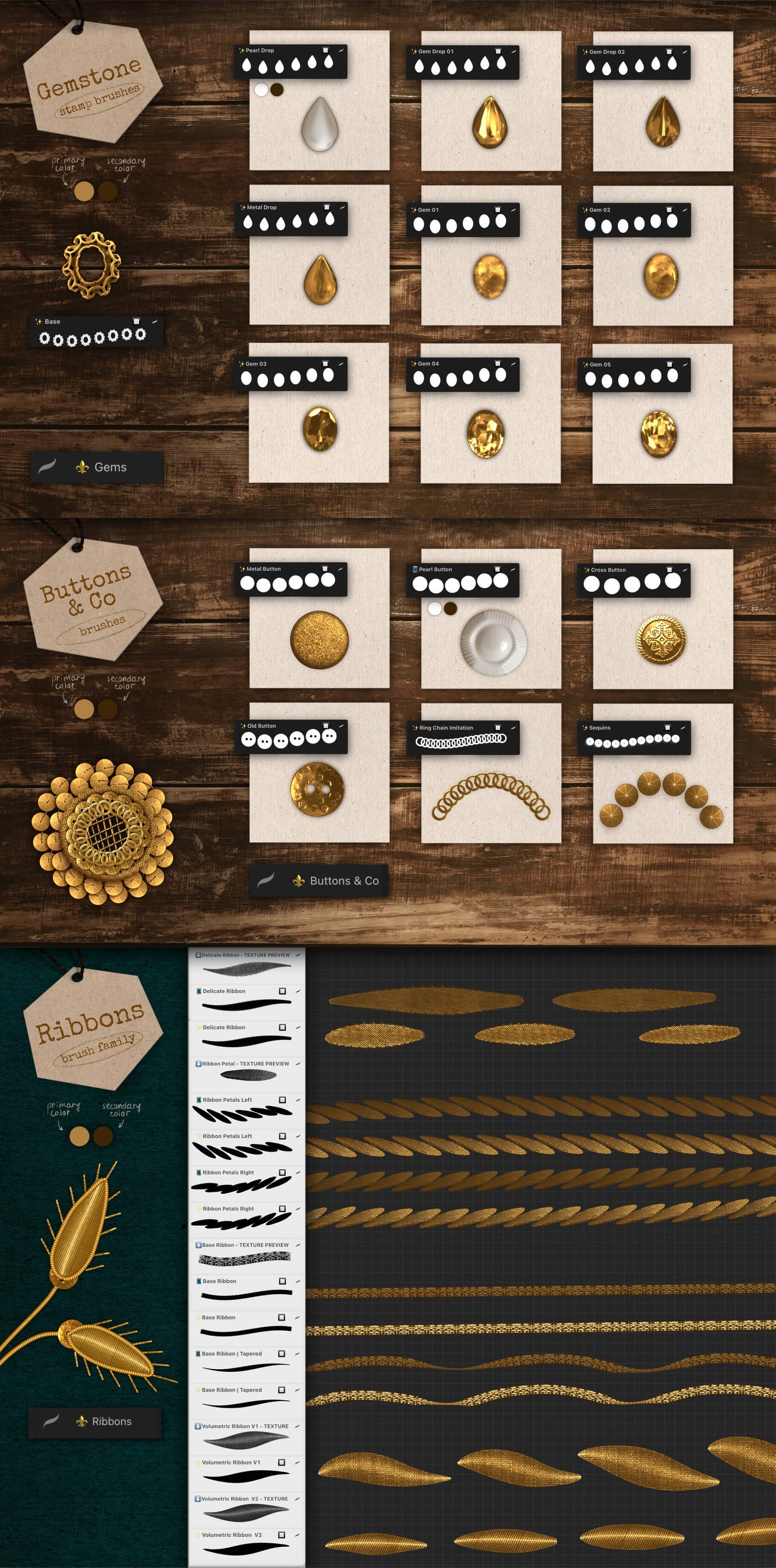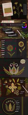 Get ready to dive into the world of digital goldwork embroidery like never before. With the Goldwork Art Box collection, you get almost 200 awesome brushes at your fingertips, neatly organized into 12 brush sets, ensuring a seamless and intuitive experience.