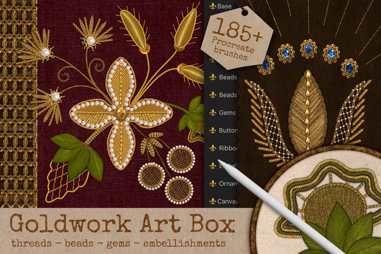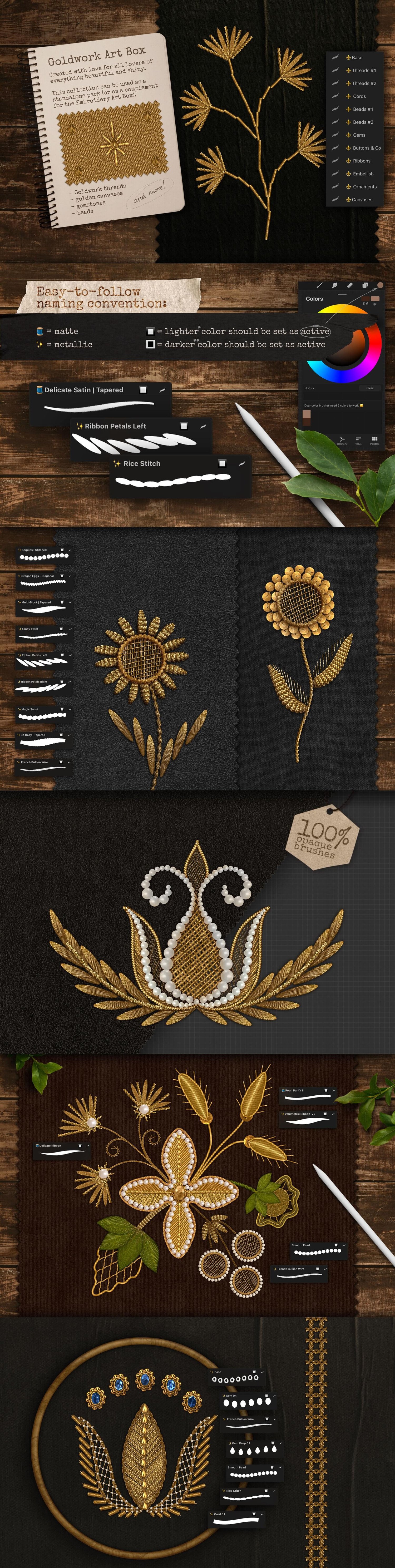Goldwork Art Box 🧵185+ Embroidery Brushes for Procreate