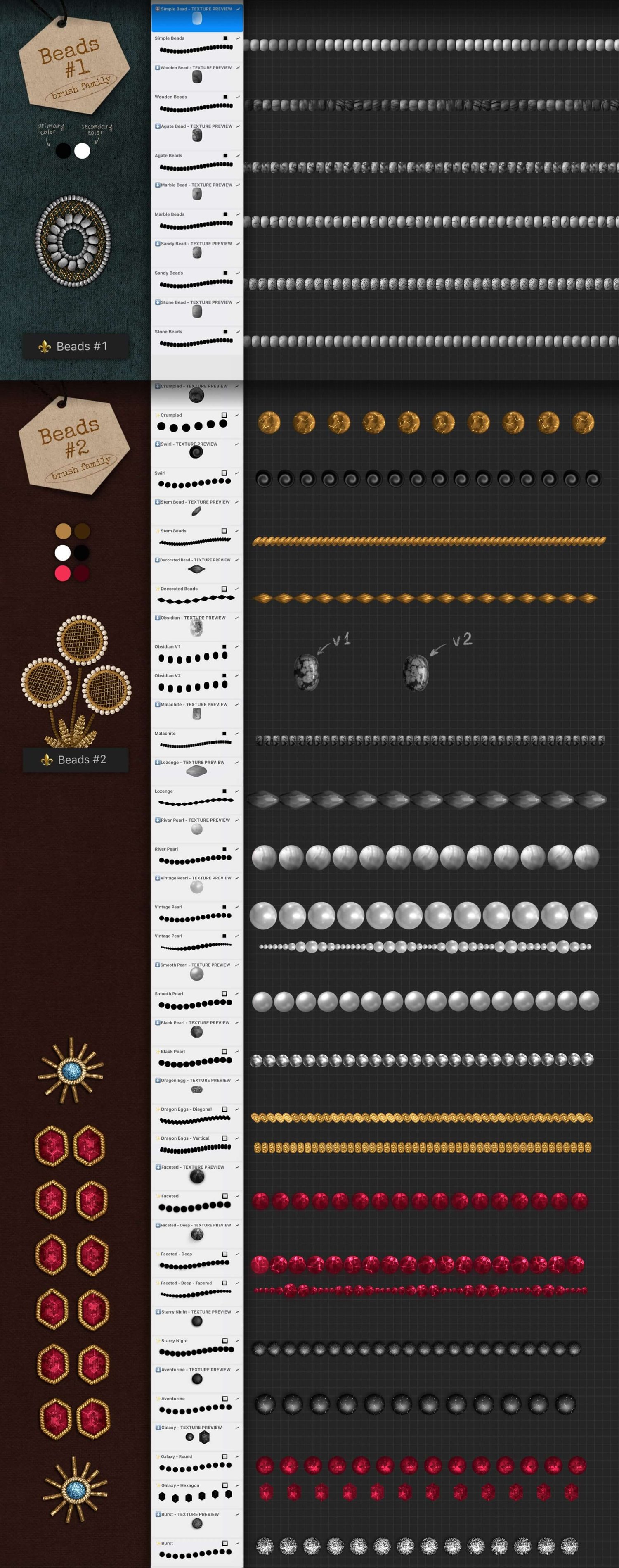 - 30+ bead brushes organized in 2 sets
